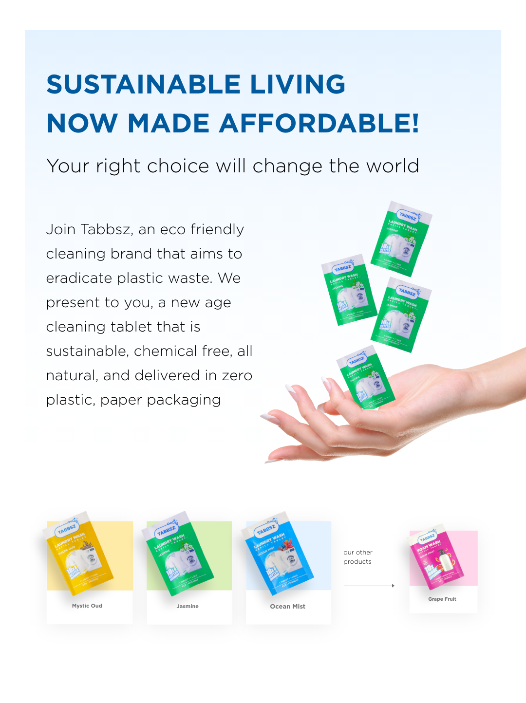Tired of juggling liquids, powders, and plastic pods? TABBSZ cuts the chaos. One tiny, 100% plastic-free tablet handles the toughest stains—grass, coffee, food, makeup—without harsh chemicals or confusion.