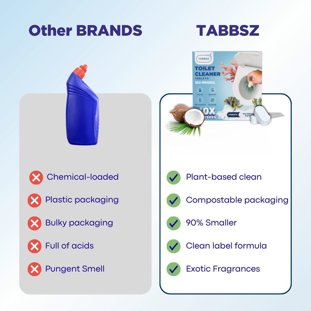 Meet the future of toilet cleaning: 100% plastic-free, zero-waste, and seriously powerful. No harsh chemicals. No choking fumes. No plastic bottles haunting the planet. Just pure cleaning power in a tiny tablet.